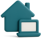 Ilustración 3D de un portátil con lista de verificación, una casa y un icono de advertencia que representa la gestión de incidencias y mantenimiento en alojamientos vacacionales.